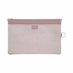 メッシュの入った透明素材の丈夫なケース。透明素材なので中身が一目瞭然。吊り下げ用フック付きで、保管にも便利です。
