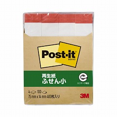 くり返し貼ったりはがしたりできるポストイット通常粘着製品です。一行メモ、見出しに便利なサイズ。資源の有効利用を考え、古紙パルプ配合率100%の再生紙を使用しています。