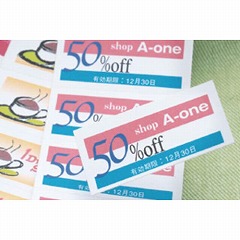 各種プリンタ兼用で印刷できる、店頭POPやプライスカード作成におすすめのカードです。印刷後、ミシン目に沿って山折り谷折りするだけで簡単に小さいカードが作れます。