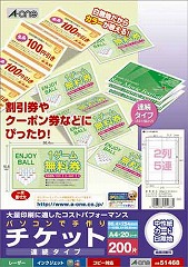 各種プリンタ兼用で印刷できる、チケット用紙です。ミシン目に沿って1枚1枚切り離しても、粗いミシン目のほうを繋げたまま回数券など連続したチケットを作ることもできます。