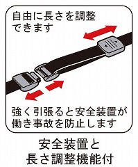 ●仕様/安全装置・長さ調整付き。ストラップ先端:脱着松葉