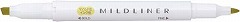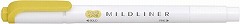 淡い色合いのラインマーカー「マイルドライナー」。落ち着いた色合いのインクなので目がチカチカしないで疲れにくく、書類のチェック、手帳や参考書のマーキングに最適です。太細両用のツインタイプの蛍光ペンです。