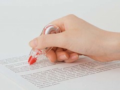 コンパクトなのに高性能!細書きボールペンにも強く、テープはがれが少ない。まっすぐ引ける手ブレ補正ヘッド構造。ペンケースにすっぽり入ります。