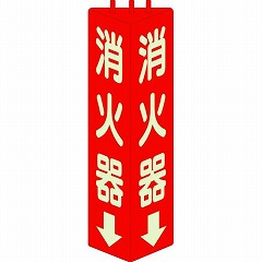 消灯時、文字がしばらく光る蓄光式。三角柱型タイプ。