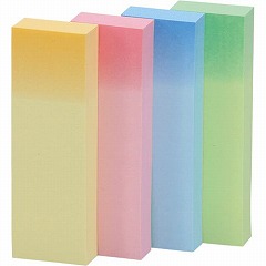 くり返し貼ったりはがしたりできるポストイット通常粘着製品です。上品なグラデーションカラー。伝言メモ、見出しに便利なサイズ。資源の有効利用を考え、古紙パルプ配合率100%の再生紙を使用しています。