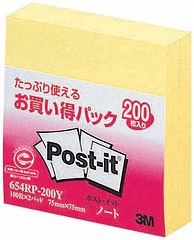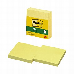 くり返し貼ったりはがしたりできるポストイット通常粘着製品です。詳しい伝言、情報整理などに便利なノートサイズ。資源の有効利用を考え、古紙パルプ配合率100%の再生紙を使用しています。