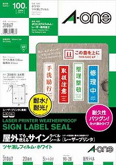レーザープリンタ(LBP)で印刷できる、屋外でも使えるホワイトツヤ消しフィルム素材のラベルシールです。耐水性、耐光性に優れています。