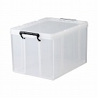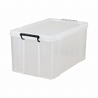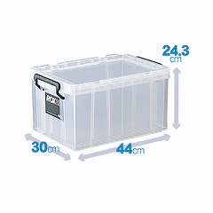 ロック式のフタ付きで丈夫な樹脂製ボックス。スタッキングもできて便利!キャスター(別売)を取り付ければ移動もラク!ロープを掛けられる溝がフタに付属。