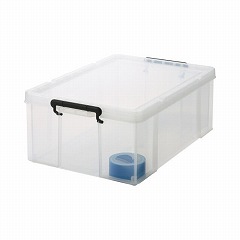 ロック式のフタ付きで丈夫な樹脂製ボックス。スタッキングもできて便利!キャスター(別売)を取り付ければ移動もラク!ロープを掛けられる溝がフタに付属。