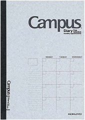 日付を自分で書き込むタイプのダイアリー。好きな時期から始められます。ノート罫のページも付いて、スケジュール以外のメモ書きも可能です。