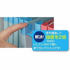 フラットファイルで一番ボロボロになりやすい背の部分をしっかり補強。背に指を引っ掛けてファイルを取り出す際にも安心。紙製だけど耐久性が重要という方にオススメ!