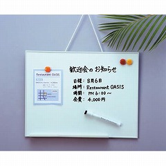 ●付属品/ホワイトボードマーカー(黒・イレーザー付き)1本、トレー(取り外し可能)1個、吊り下げひも、マグネット3個