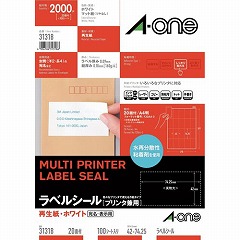 グリーン購入法適合商品。各種プリンタで印刷できる、再生紙素材のラベルシールです。ラベル、台紙共に古紙パルプ配合率70%以上の再生紙を使用しています。宛名ラベル・表示ラベル作成に。