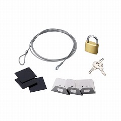 ●付属品/取り付けパーツ×3、両面テープ×3、南京錠×1、鍵×2、透明ワイヤー×1