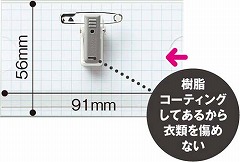 樹脂コーティングされたクリップだから衣服を傷めにくい!透明度の高いハードタイプです。安全ピン・クリップ両用型。金属クリップをエラストマー樹脂でコーティング。服の生地を傷めにくい。