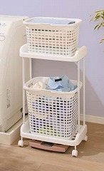 ランドリーバスケットとバスケットラックの3点セットです。大きさの違うバスケットが2個付いているので洗濯物を分ける際に便利です。キャスター付きで移動も楽に行えます。
