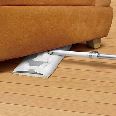 立ったままラクラクお手入れ。ラクラク回転ヘッドで、片手でもスイスイ、小回りが利きます!立てかけても倒れにくいラバーキャップです。
