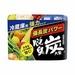 冷蔵庫のニオイを備長炭と活性炭のパワーが強力に脱臭。ゼリー状の炭が小さくなるので取替時期もわかります。