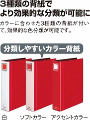 コクヨのチューブファイル(両開き)!カラーに合わせた3種類の背紙がついているから、使い分けでより効果的な分類が可能。