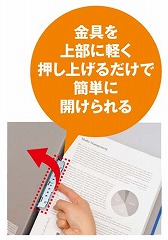 片開きチューブファイルと言えばコレ!金具を上部に軽く押し上げるだけで簡単に開けられます。