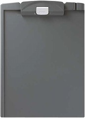 簡単レバー操作でクリップをラクラク開閉できます。樹脂タイプのクリップボード。ペンホルダー付き。