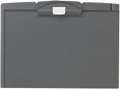 簡単レバー操作でクリップをラクラク開閉できます。樹脂タイプのクリップボード。ペンホルダー付き。