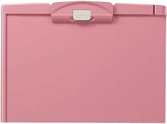 簡単レバー操作でクリップをラクラク開閉できます。樹脂タイプのクリップボード。ペンホルダー付き。