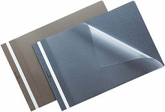 製本テープがない簡易タイプのレポートメーカー。背がきれいに仕上がるので提出用に便利なステープラーとじタイプ。オモテ:透明PP、ウラ:不透明の紙製タイプです。