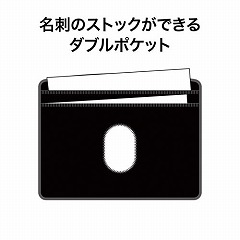 お手頃価格で手に入るレザー調吊り下げ名札。名刺等のストックに便利な2ポケットタイプ。