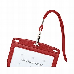 お手頃価格で手に入るレザー調吊り下げ名札。名刺等のストックに便利な2ポケットタイプ。