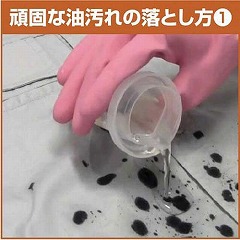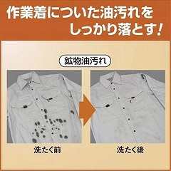 パワフル洗浄成分が汚れに浸透し、作業着・厨房着についた頑固な油汚れをしっかりおとす!
