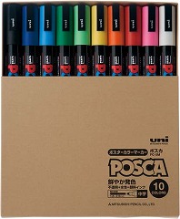 ポスターカラーのように鮮やかな発色。金属、ガラス、プラスチックなどにも書けます。紙に書いてもにじみや裏うつりがなく、乾けば水に流れず、重ね描きもOK。