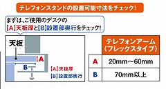 ●設置可能天板寸法/天板厚20から60mm、天板出っ張り70mm以上