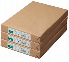 グリーン購入法適合のリサイクルコピー用紙。白色度を抑えたタイプ。古紙パルプ配合率100%。社内資料だけでなく、お客様への提出書類に使って、環境配慮をアピールしましょう!