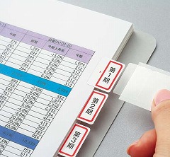 折り目に沿って位置合わせができるから、簡単・キレイに貼れる。マルチプリンタ対応の強粘着タイプのタックインデックスです。