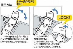 リングとじ具をロックできるので、書類が抜け落ちにくい。しっかりした貼り表紙タイプ!