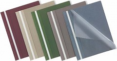 製本テープがない簡易タイプのレポートメーカー。背がきれいに仕上がるので提出用に便利なステープラーとじタイプ。オモテ:透明PP、ウラ:不透明の紙製タイプです。