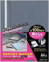 製本テープがない簡易タイプのレポートメーカー。背がきれいに仕上がるので提出用に便利なステープラーとじタイプ。オモテ:透明PP、ウラ:不透明の紙製タイプです。