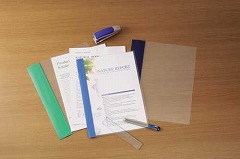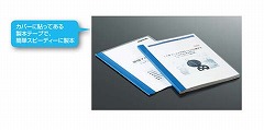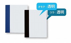 カバーに貼ってある製本テープで簡単スピーディに製本できます。オモテ:透明、ウラ:透明タイプになります。