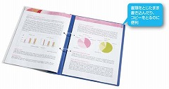 リングファイルのように180度見開きで閲覧できる優れもの!書類を閉じたまま書き込んだり、コピーを取るのに便利です。