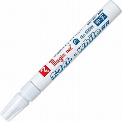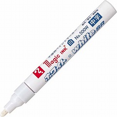 鉄や樹脂はもちろん、色画用紙や皮製品などに染みこみ過ぎずに白さがクッキリ。不透明ペイントマーカー。