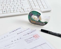 18mm幅。巻芯径25mmの小巻タイプ。表面がつや消し加工されており、コピーをとってもほとんど影が出ません。湿気や紫外線に強く、変質・変色しにくくなっています。上から文字が書けます。1個入。