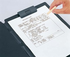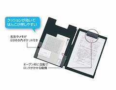 はんこがきれいに押せる、筆記特性に優れたクリップファイルです。名刺やメモがはさめる内ポケット付きです。