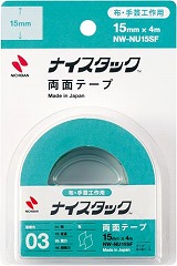 デニムやフェルトにもしっかり接着する布用両面テープ。布と布・布と紙・木・アップリケとの接着や、手芸用としてリボン・アップリケ等の接着にお使いいただけます。