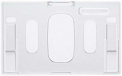 コクヨ製のID・ICカードサイズのハードケース。吊り下げひもを挟んで留められるクリップつき。
