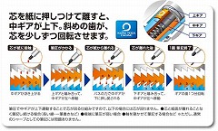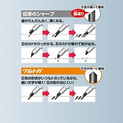 常に細くキレイな字が書ける!芯が回ってトガり続ける「クルトガ」シリーズ。ギザギザ加工のグリップで滑りにくいタイプ。