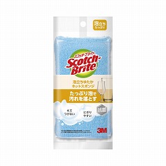 食器やグラス洗いに。2種類の素材のパイルで汚れをスッキリ落とす、泡立ちゆたかなネットスポンジです。しなやかで折り曲げやすいスポンジです。