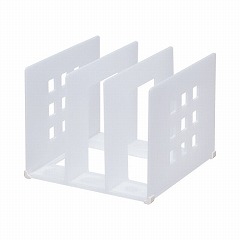 タテ置き・ヨコ置きどちらでも使用できる仕切ラック。底の四隅のL字型の滑り止めがラックの滑りを防止します。