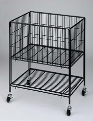 どんな売場にもマッチする小型のワイヤーワゴン。耐荷重60キログラム。折りたたみ式です。