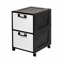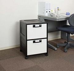 ファイル収納におすすめな鍵付きオフィスキャビネット深型2段タイプです。インナーケースやA4ファイルの収納におすすめなサイズです。引き出しやすい金属レールを採用しています。移動に便利なキャスター付きです。